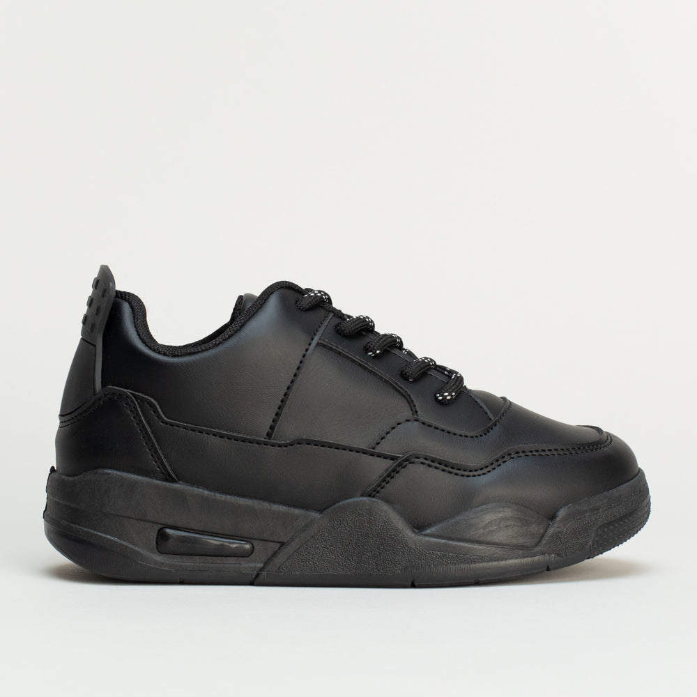 Bridging the gap between smart and comfortable, these black trainers will see him from playground to classroom in style.